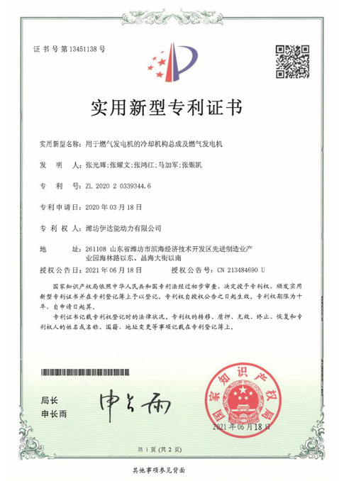 用于燃氣發電機的冷卻機構總成及燃氣發電機-實用新型證書